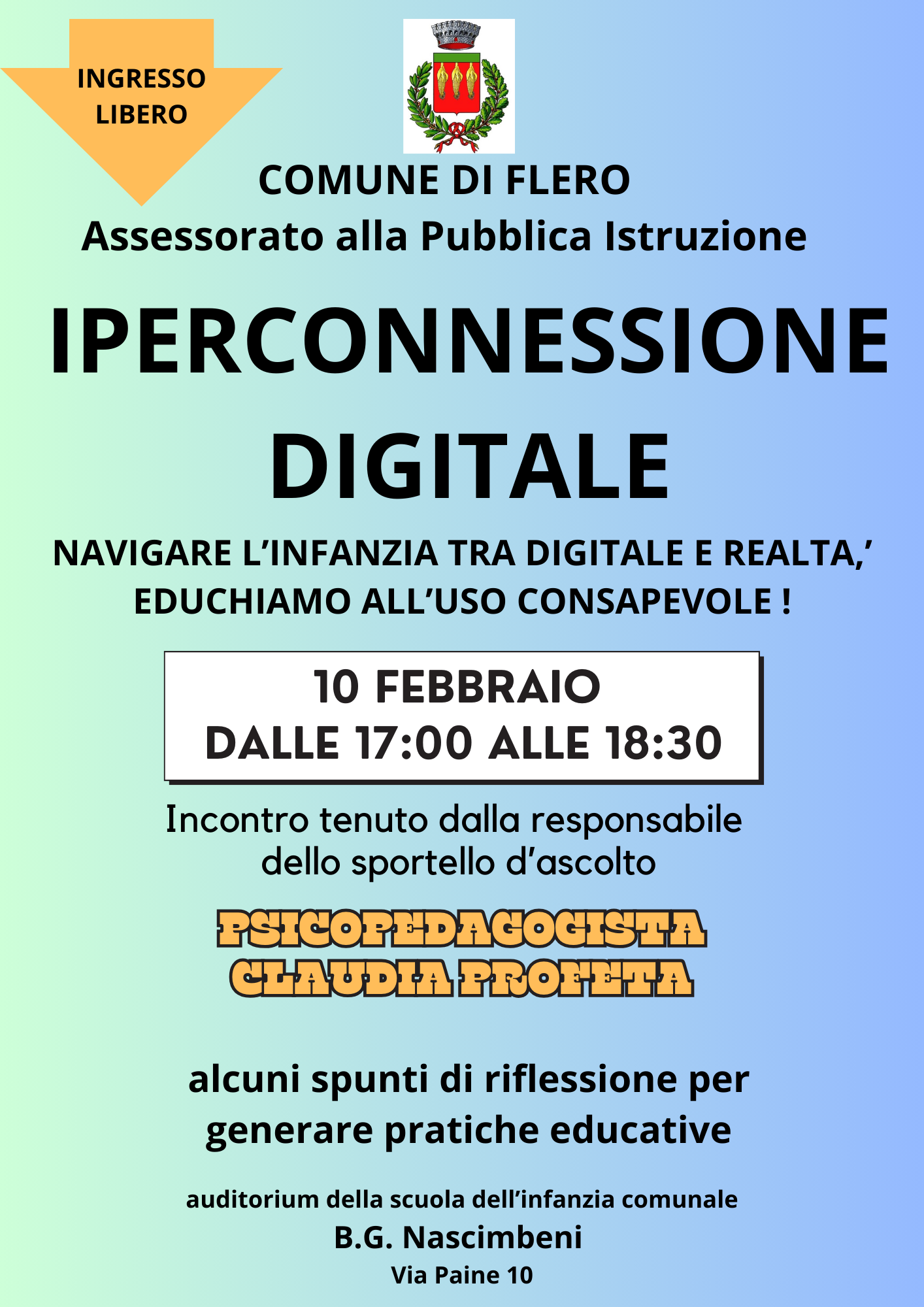 Incontro Psicopedagogista dott.ssa Claudia Profeta IPERCONNESIONE DIGITALE - 10 Febbraio ore 17.00