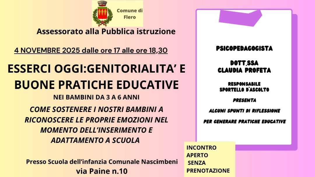 "Genitorialità e Buone Pratiche Educative" nei bambini da 3 a 6 anni, a cura della dott.ssa Profeta, Psicopedagogista